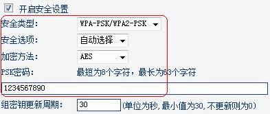 此時無線路由器無線安全被配置為高安全級別的WPA2-PSK AES加密