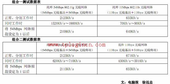 當兩個無線網絡同時進行FTP無線數據傳輸時,54Mbps的無線網絡速度降到了1520KB/s~1860KB/s,而 11Mbps 無線網絡的速度則大幅下降,僅有 70KB/s~90KB/s。